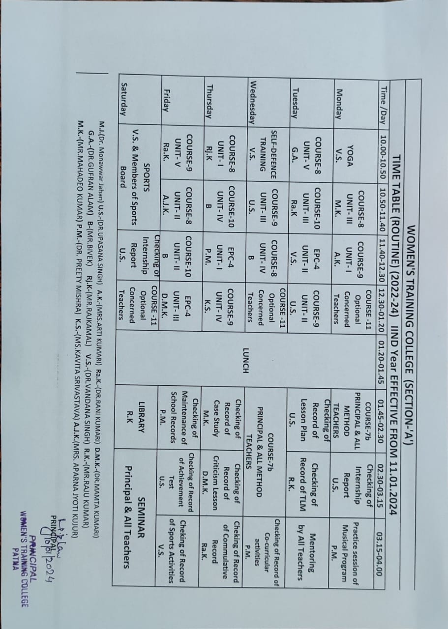 Time Table (ROUTINE) (2022-24) 2ND Year EFFECTIVE FROM 11.01.2024 (SECTION - "A")